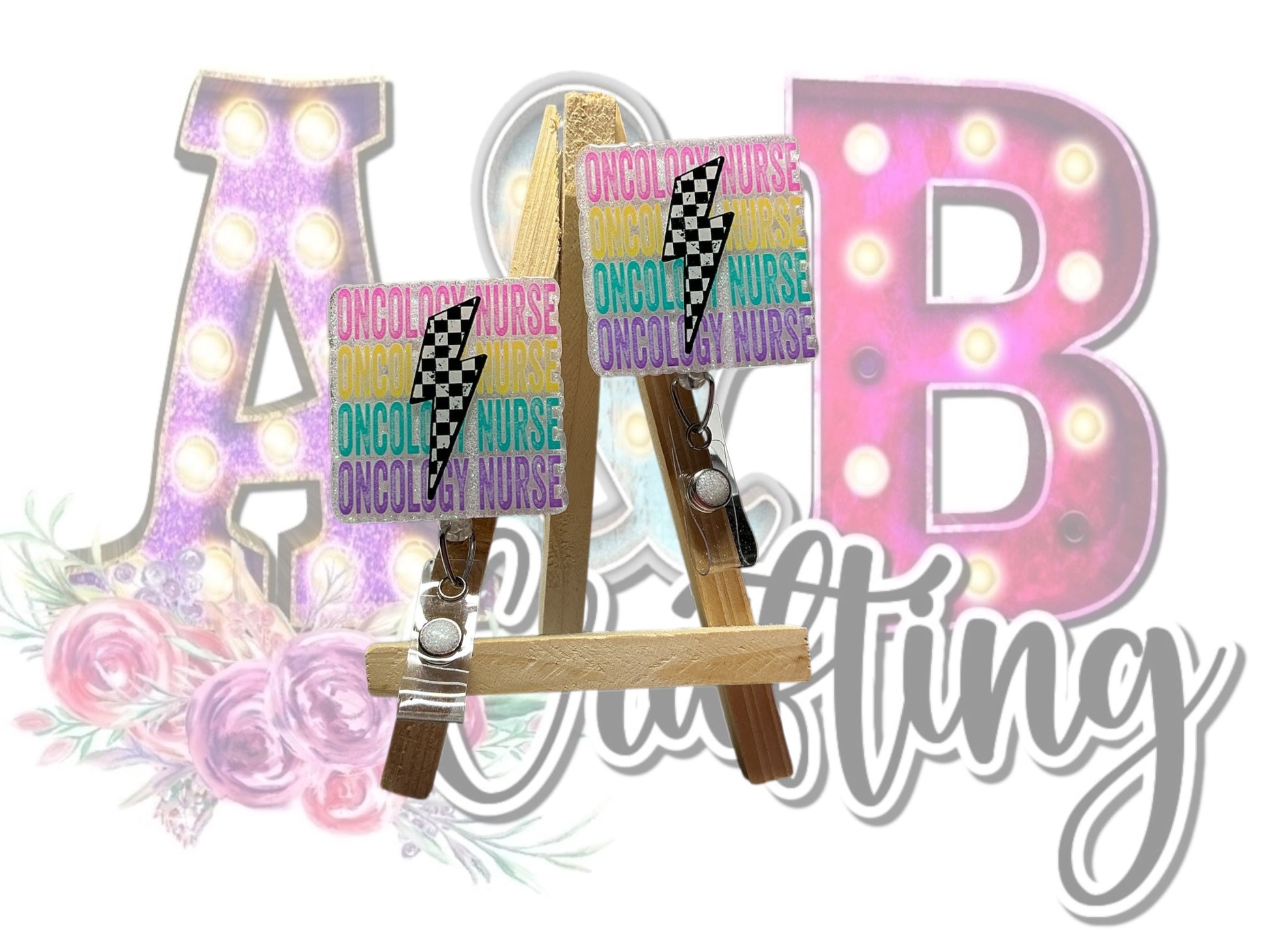 Oncology Nurse Checkered Lightening Badge Reel